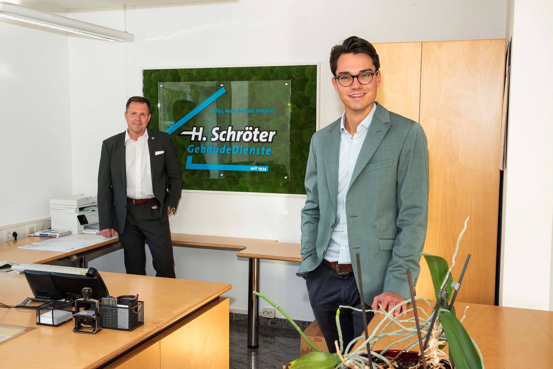 Als am 01.04.1943 Sohn Gerhard Schröter (geb. 27.01.1929) die Lehre als Gebäudereiniger beginnen wollte, bekam Heinrich Schröter von der NSDAP die Genehmigung, den Betrieb nebenbei wieder zu betreiben, um Sohn Gerhard auszubilden.